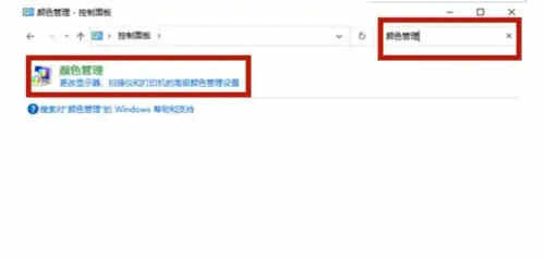 2、进入控制面板以后,在右上角的搜索栏里输入“颜色管理”,并点击该功能;