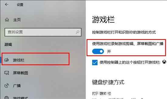 4、点击左侧“游戏栏”,打开“使用游戏栏录制游戏剪辑、屏幕截图和广播”。
