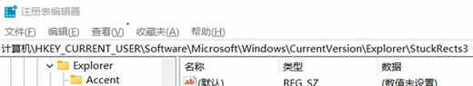3、将如下路径复制到注册表路径中“HKEY_CURRENT_USERSoftwareMicrosoftWindowsCurrentVersionExplorerStuckRects3”