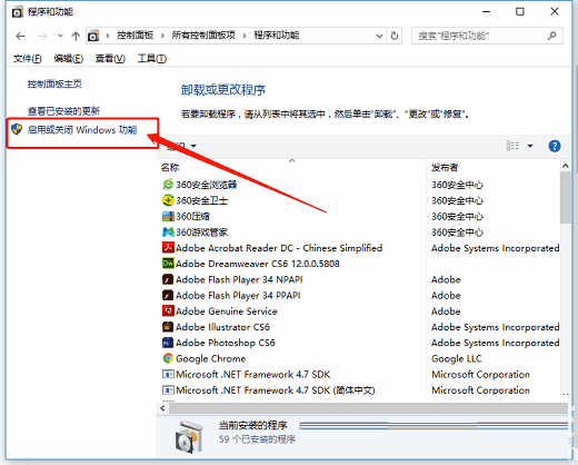 3、在程序和功能中,点击【启用或关闭Windows功能】。