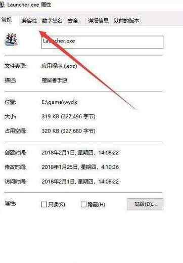 2、在打开的游戏属性窗口中,点击上面的“兼容性”选项卡。