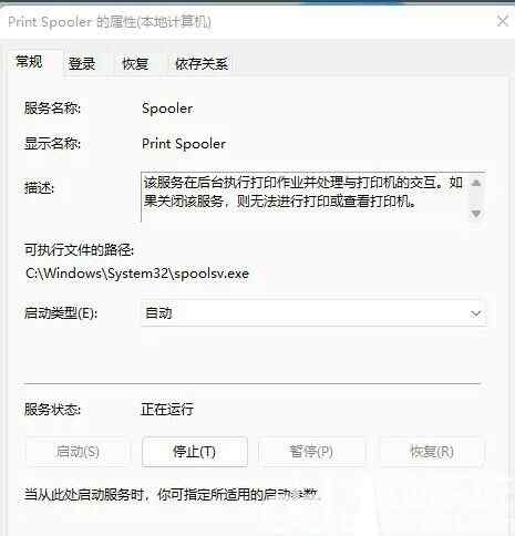 网络打印机可以为局域网内的用户提供打印服务,每个成员都能自由访问这个设备,但是部分win11用户反映无法连接网络打印机,这种情况要怎么办呢?通过快捷指令打开服务面板,在列表中找到Print Spooler,双击打开它的属性窗口,先点击一下停止按钮,再点击启动,同时将它的启动类型设置成自动就可以了。
