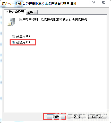 4、选择【已禁用】选项,然后点击【确定】按钮进行保存,最后将电脑进行重启就可以了。