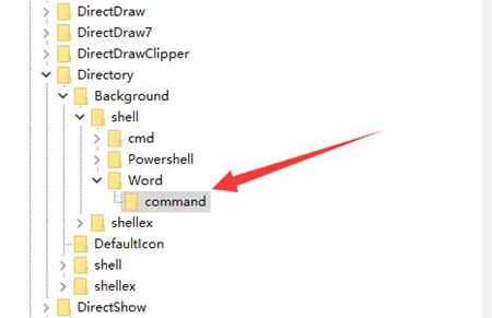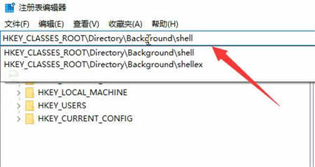 3、然后进入注册表“HKEY_CLASSES_ROOT\Directory\Background\shell”位置