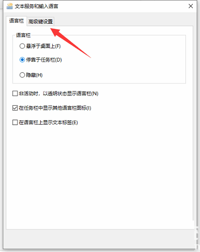 6、在弹出的“文本和输入语言”界面再点击“高级键设置”。