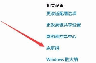 4、找到“相关设置”中的“家庭组”,即可打开家庭组窗口了: