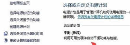 3.接下来,打开如下图的电源选项后,我们看看到只有“平衡”模式,而没有高性能模式。
