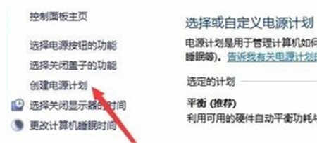 4.接下来,我们点击左边的“创建电源计划”菜单项,如图所示。