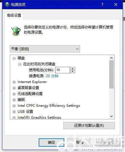 6、点击“更改高级电源设置”即可打开“电源选项 - 高级设置”窗口。如图: