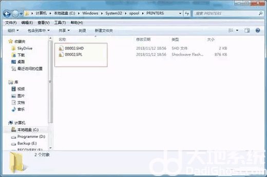 PRINTERS这个文件夹里面的文件是打印任务文件。如果里面有文件,说明不正常,有任务卡在里面了,所以需要将此文件删除。