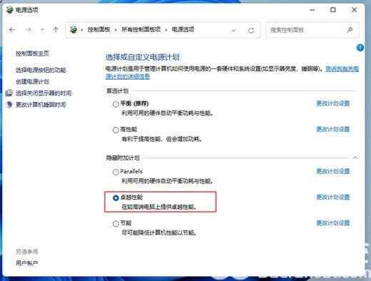 6、此时我们回到控制面板,退出并重新进入电源选项,就可以看到“卓越性能”选项了,选择该选项就好了。