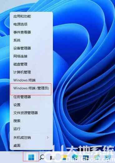 4、右键点击任务栏上的开始菜单图标,选择“Windows终端(管理员)”。