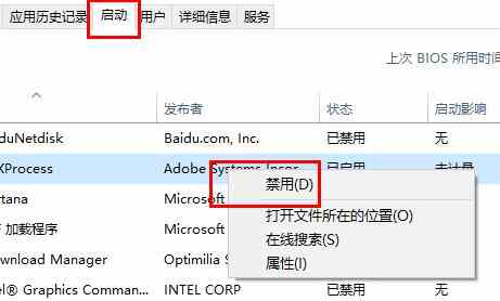 3、点击“全部禁用”,右击开始菜单选择”任务管理器”