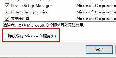 2、点击上面的“服务”,勾选下面的“隐藏所有 Microsoft 服务”