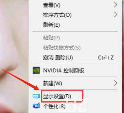 3、右键点击桌面空白处,菜单栏选择“显示设置”下一步。