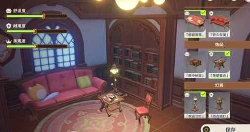 从上到下选择【醇甜落落莓】、【茶歇餐点】、【欢适立灯】、【食中百味】、【宏魁宝库】即可,搭配方式只有一种。