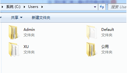 3、第一个是默认的admin,如果给电脑设置过名称,这里会显示设置过的名称。第二个是默认的隐藏 Default 文件。第三个是计算机用户名下的文件夹。