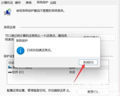 8.这个过程完成之后,你就会收到一条信息,那么就说明还原点创建完成啦。