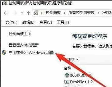 3、点击窗口左侧边栏的“启有或关闭Windows功能”菜单项。