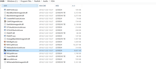 4. 如果没有找到控制面板中的“Realtek高清晰音频管理器”,我们还可以通过这个方法来解决问题:首先打开我的电脑,按该路径“C:\Program Files\Realtek\Audio\HDA\RtkNGUI64.exe”找到文件“RtkNGUI64.exe”。(ps:每个电脑最后找到的文件名都不一定相同,确保前面的文件夹选对了就行。)