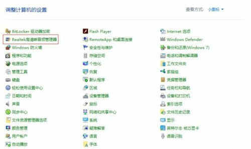 3. 在确认耳机本身和声卡驱动都没有问题后,我们打开“控制面板”,找到并点击“Realtek高清晰音频管理器”。然后点击插孔设置,在弹出窗口中将“禁用前面板插孔检测”勾选。