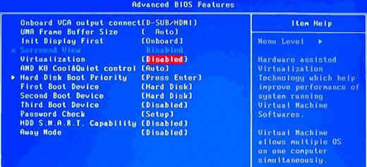 2、技嘉主板是按del进bios,在BIOS Feature下,找到Intel Virtualization Technology英特尔虚拟化技术选项,设置成enabled,另一个选项-VT-d也开启,按F10保存重启。
