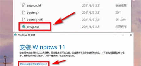 3.删除之后,继续选择运行“Setup.exe”,进入安装向导点击“更改安装程序下载更新方式”。注意现在要断开电脑的网络,在【获取更新、驱动程序和可选功能】界面,选择“不是现在”。