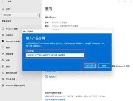 5、然后输入win11专业版的激活密钥:8G7XN-V7YWC-W8RPC-V73KB-YWRDB,点击下一步。