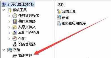 2、然后在打开的计算机管理界面中,点击界面左侧的“磁盘管理”即可