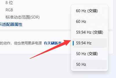 5、在下面找到“选择刷新率”,点击右边的选单