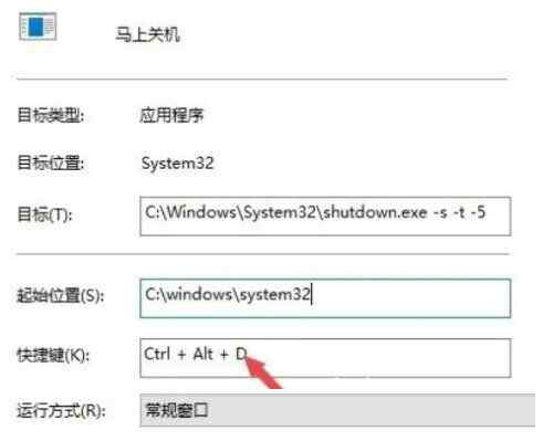 6、点击文本框:点击快捷键文本框,按下我们要关机的组合键,比如Ctrl+Alt+D即可。