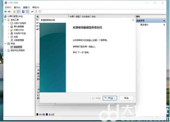 5、提示压缩完成后,系统磁盘会有一个未分配的分区,鼠标选中后右键,打开新建简单卷。
