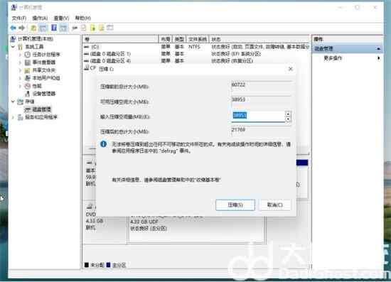 4、此时能够得出压缩空间的数值,然后输入需要的压缩空间,点击压缩。
