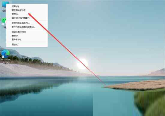 1、首先登录win11系统的桌面后,鼠标右键点击此电脑图标,点击管理。
