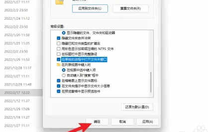 3、勾选界面的【在单独的进程中打开文件夹窗口】选项