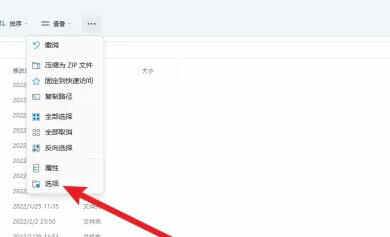 1、点击资源管理器的查看更多,点击菜单的【选项】