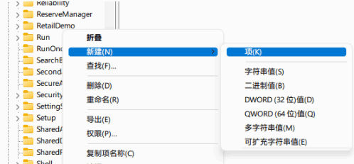 3.然后我们点击Shell Extensions 右键新建“项”。