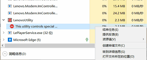 总而言之就是关闭进程里面的 XXXXX Utility 进程就可以了,如果是联想电脑的话,就是将 LenovoUtility 这个进程关闭。其他电脑还可能是XXXXX OSD Utility进程,或者XXXXX OSD进程,注意关闭前要确认这个进程是来控制热键的,否则可能会出现未知错误。