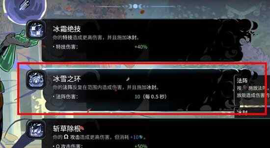 冰雪之环正好是个光环技能,有效搭配寒风之力,两个配合控制近身敌人非常强力,加上个击退基本不会被近身。