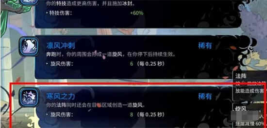 寒风之力,这个是德墨忒尔给予的,能够在法阵区域释放旋风,减移速攻速非常强大,能有效保护自己。
