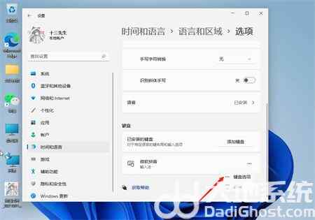 3、当前路径为:时间和语言 》 语言和区域,打开语言选项,点击中文(简体,中国)右侧的三个点,再点击语言选项;