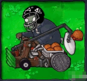 攻击方式:释放僵尸,冰/火球(范围一行,即死),使用辣椒/寒冰菇砸车(范围2x3,即死),无解,踩扁前排植物