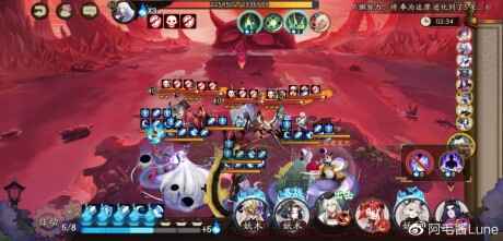 敌方阵容是一个boss+五个小怪,有三分钟的时间限制,所以需要尽快击杀,阵容选择是aoe输出式神+小袖之手,难度较高的层数需要不断手动调整标记平均伤害,首先是一速招财生生生追月神,速度最好135以上, 体服我一直打到了第五天都不用太快,(这篇攻略产出时体服最高是65层这时候才需要二号位换速度)哈哈哈哈注意打法细节,前期速度不那么快也是够用的