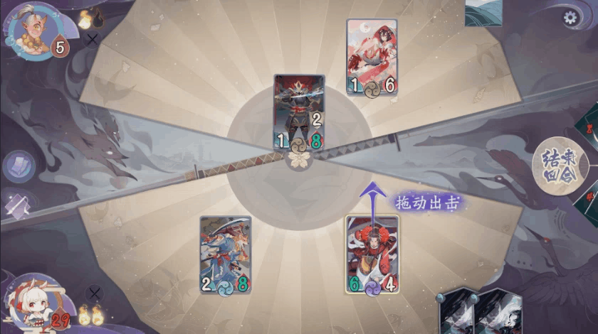 2、第二回合,面对两点生命、两点护甲的兵俑,我们无法直接斩杀,使用清姬法术牌“无名之毒”施加给兵俑4点“破甲”,这样犬神就可以直接斩杀掉兵俑。