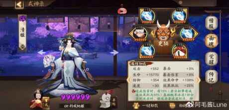 四速清姬攻命暴击/生命雪幽魂,主要打控制看情况可以用来补输出,注意不能再带土蜘蛛两件套不然泷夜叉姬的土蜘蛛会被覆盖,所以让茶几带一套即可