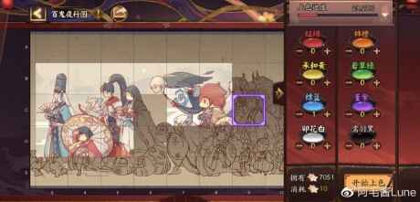 樱花则是用于购买颜料给百鬼图上色的道具。使用樱花给每块图片成功上色以后也会获得一定的棒棒糖(所以一定要记得去上色),上色的话不用太担心无论颜色上的对还是错,因为奖励都是一样的。但随着上色每一个进度的解锁,玩家都可以投票选出一个特攻式神用于鬼童丸之乱爬塔。关于选择哪些式神就要涉及到我们的阵容和打法啦~
