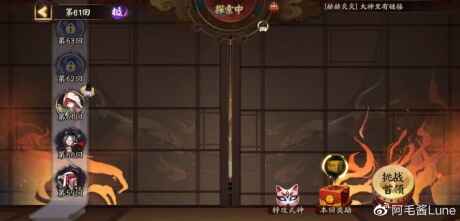 敌方阵容是一个boss+五个小怪,有三分钟的时间限制,所以需要尽快击杀,阵容选择是aoe输出式神+小袖之手,难度较高的层数需要不断手动调整标记平均伤害,首先是一速招财生生生追月神,速度最好135以上, 体服我一直打到了第五天都不用太快,(这篇攻略产出时体服最高是65层这时候才需要二号位换速度)哈哈哈哈注意打法细节,前期速度不那么快也是够用的