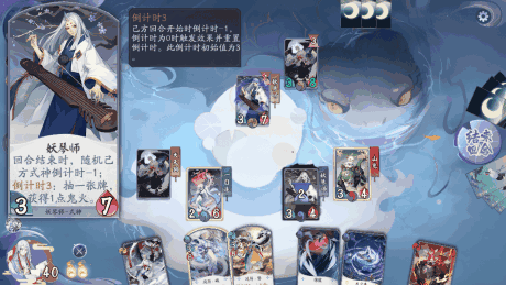 在回合结束时,妖琴师会让随机敌方式神倒计时减一,且自身具有抽一张牌,获得一点鬼火的倒计时三。