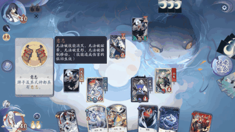 牌手及式神都具有意志。具有意志的式神无法被技能消灭,无法被眩晕、变形和强制移动。也就是说判官的消灭牌,双雪组合的眩晕牌和山兔的“这把算我赢”、“来打我啊”与“戏谑套索”,茨木童子的“鬼之手”都无法使用,尽量不要选择被克制的卡牌。