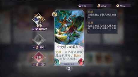 凤凰火:凤凰火作为阵容核心,其觉醒卡牌和“焚羽”形态都选择满编,提升上手概率。“凤火”有很强的单解能力,有效地针对了敌方准备区式神,所以也选择满编。“炎舞”是关键的斩杀卡牌,虽然造价较高,但是选择满编会让我们的爆发能力更强。